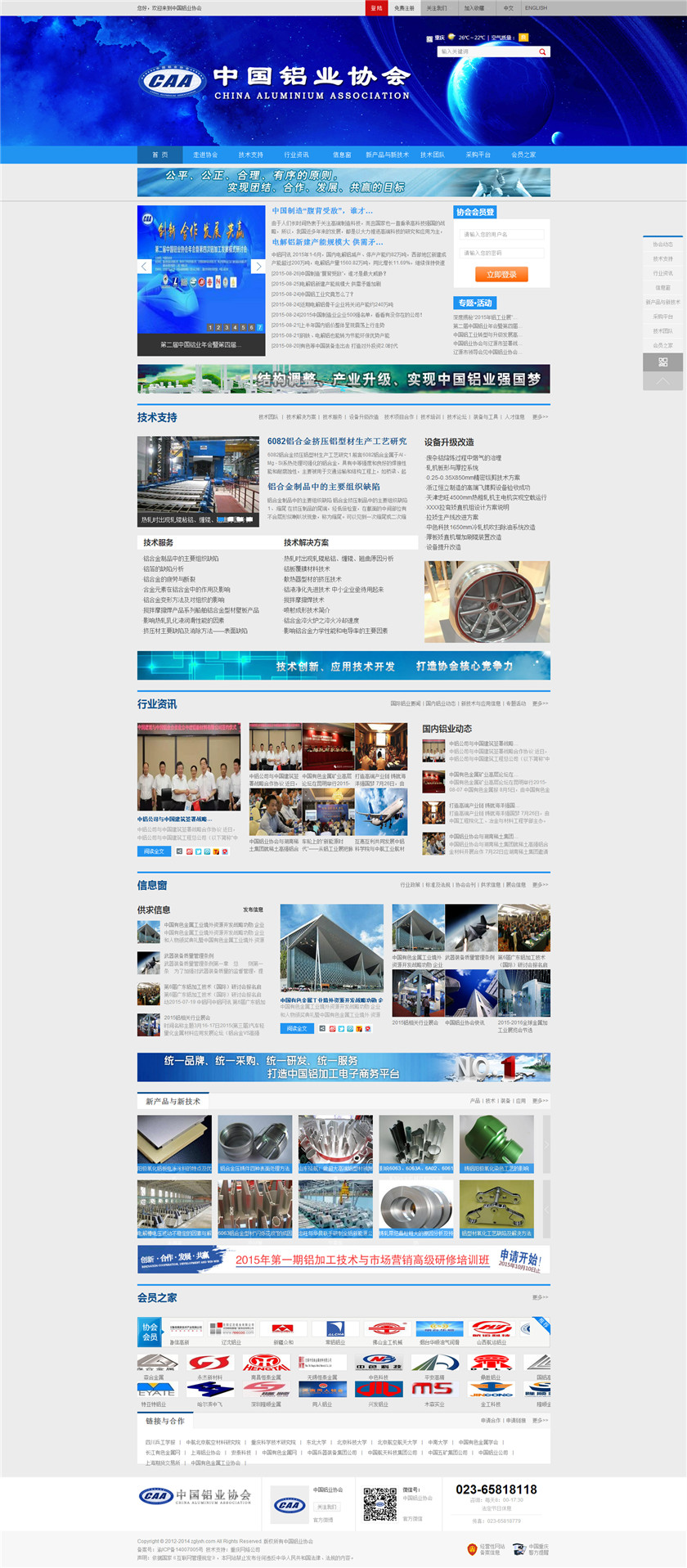 Project Description 中国铝业协会是由中国国内主要从事铝合金铸造、板、带、箔、管、棒、型材、锻件等企业组成的行业协会组织,协会由国内具有一定规模和影响力的企业发起,已有三百多家会员企业,目前还有很多企业踊跃希望加入,协会现有会员企业年销售额1000多亿元人民币,协会会员企业分布在国内华东、华南、西南、环渤海、东北、胶东半岛等中国经济活跃地区;产品涵盖航空航天、兵器装... Official website address 吐鲁番http://www.caa2014.com I want to share